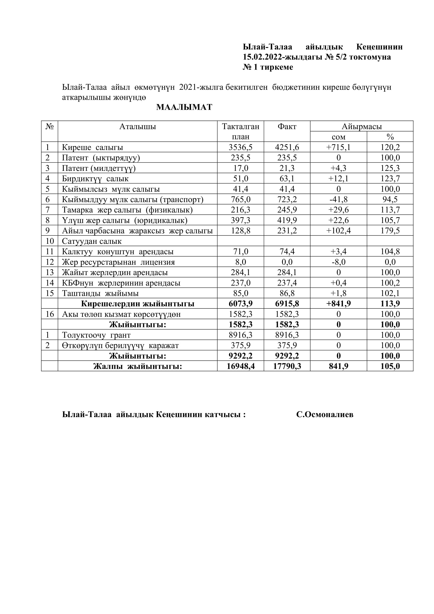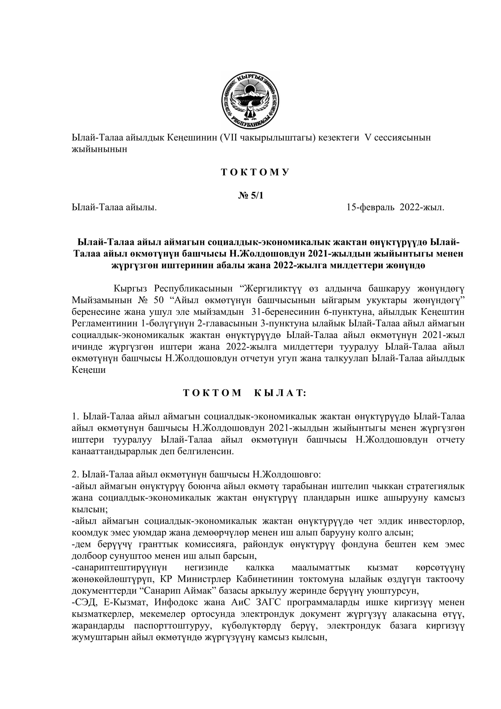 Социалдык-экономикалык өнүгүү Программасынын (СЭӨП) аткарылышы