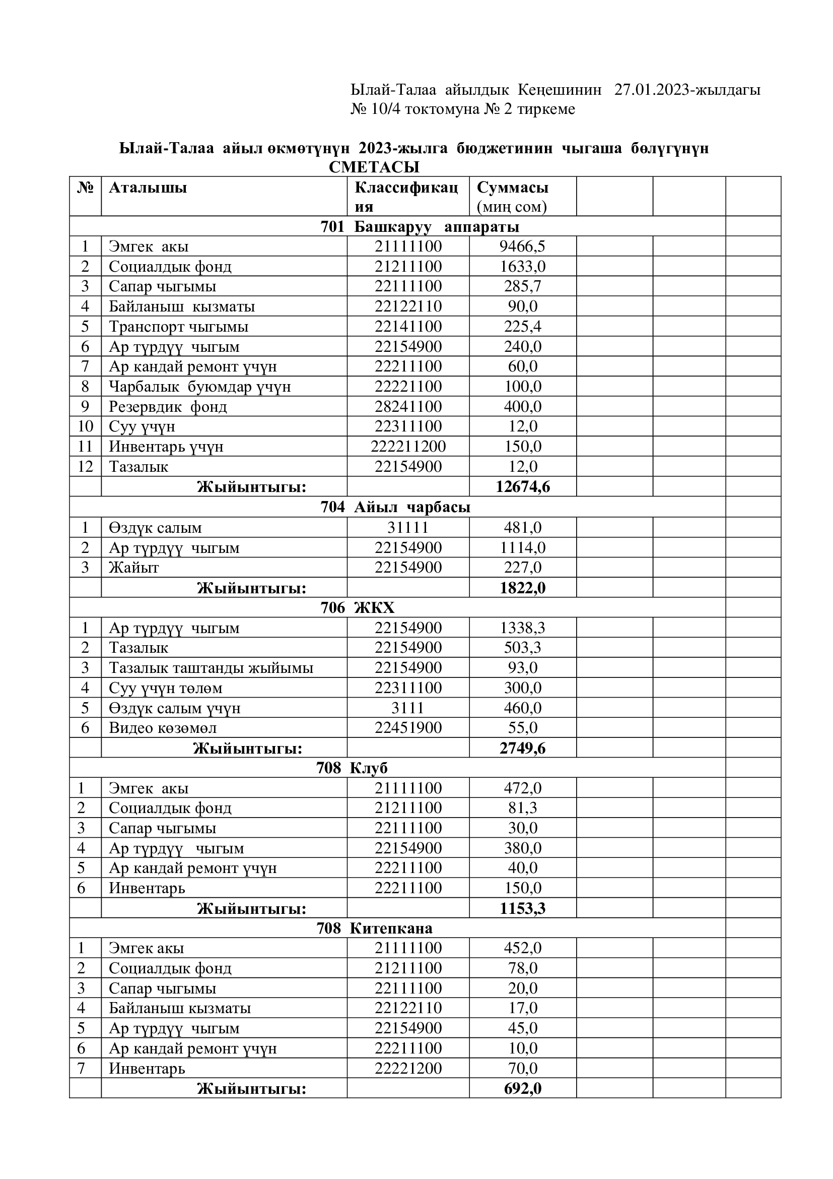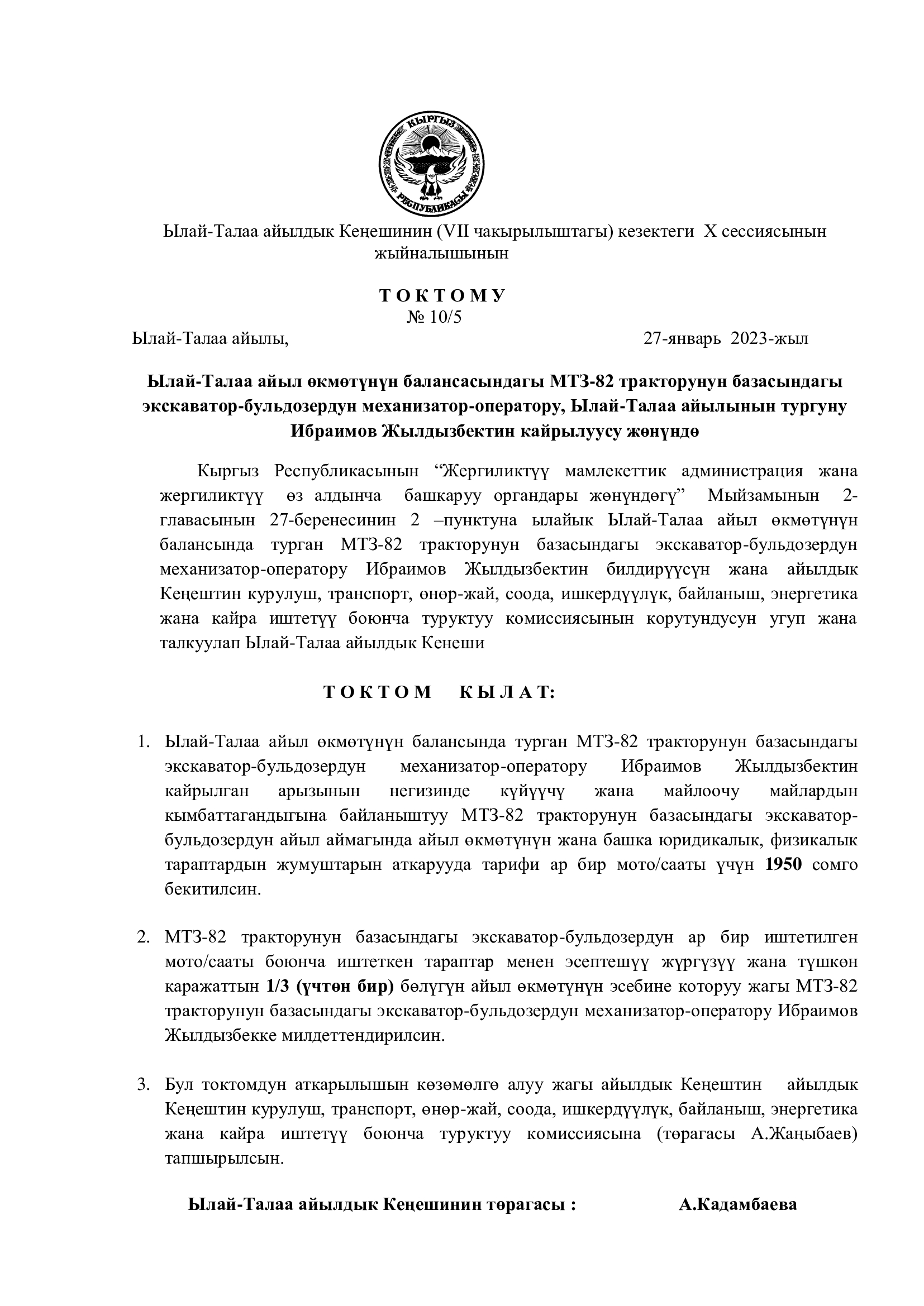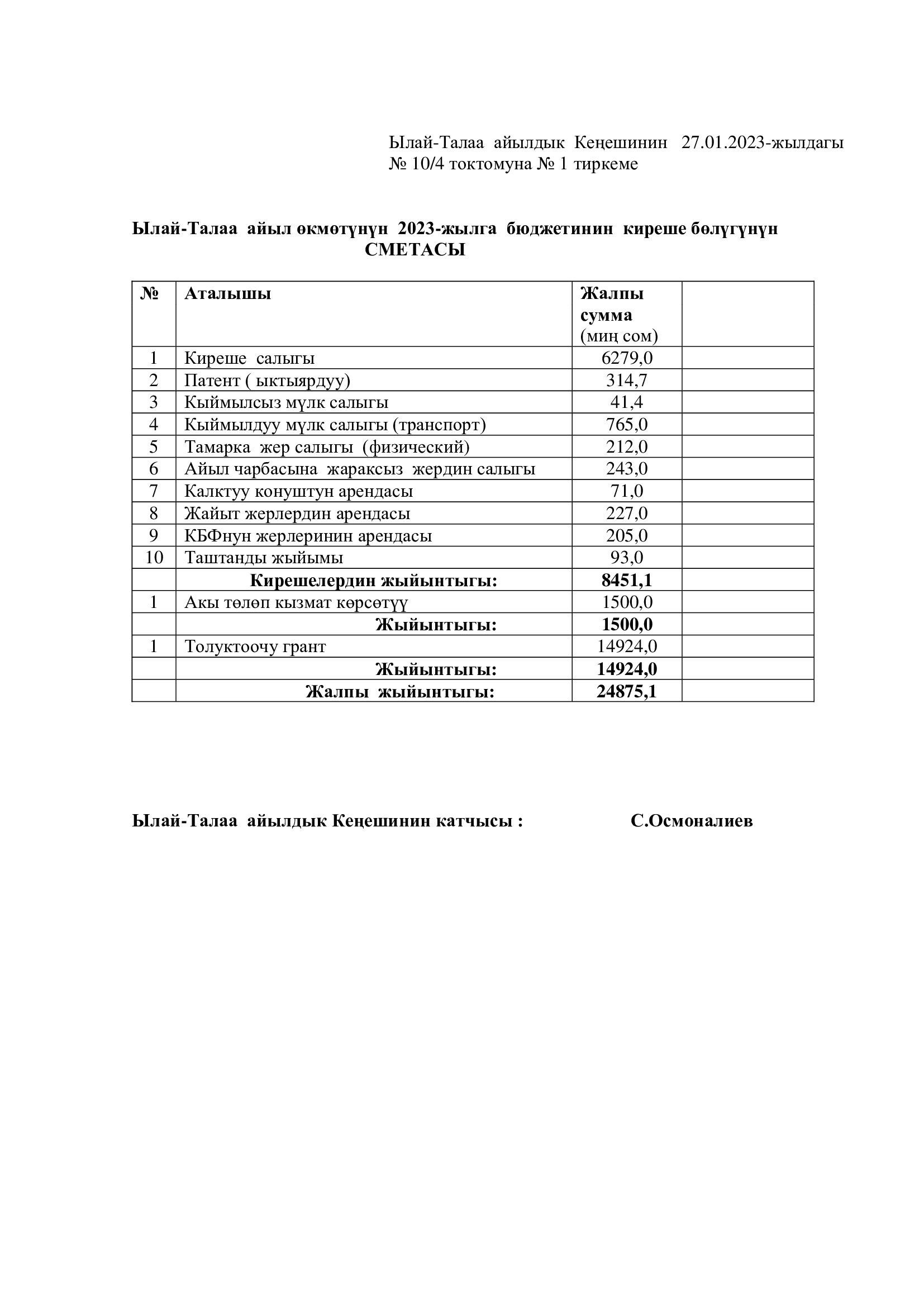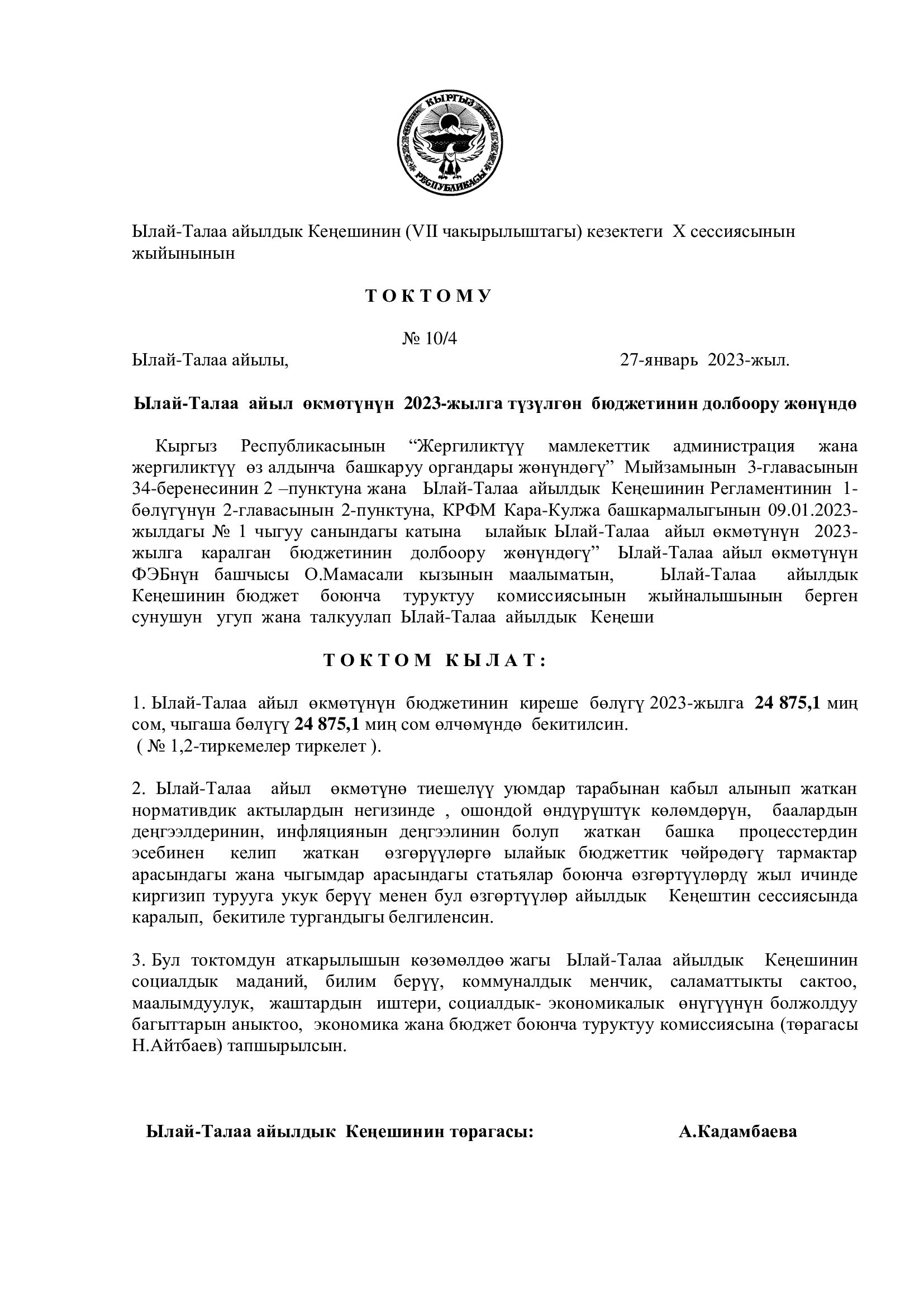2023-жылдын 27-январында кабыл алынган токтомдор