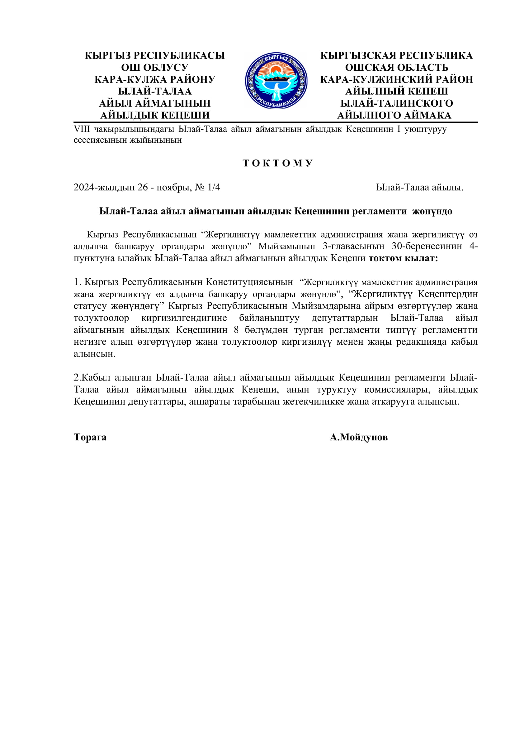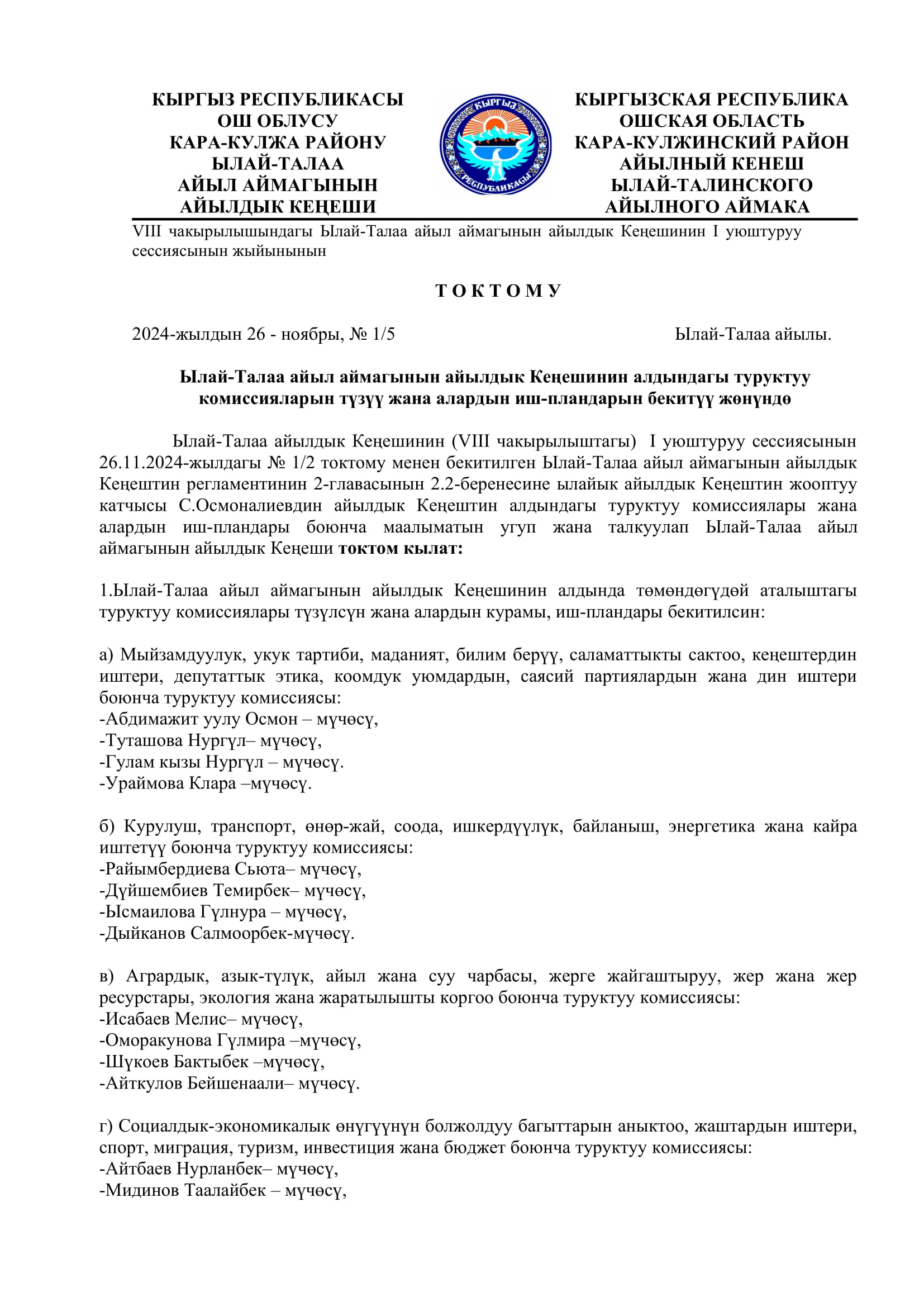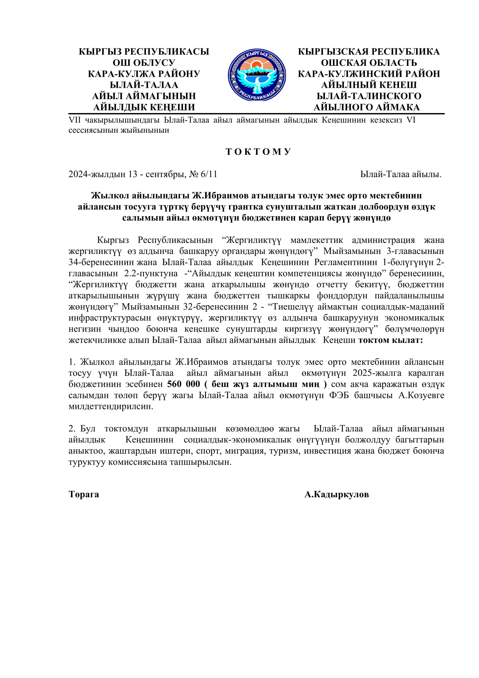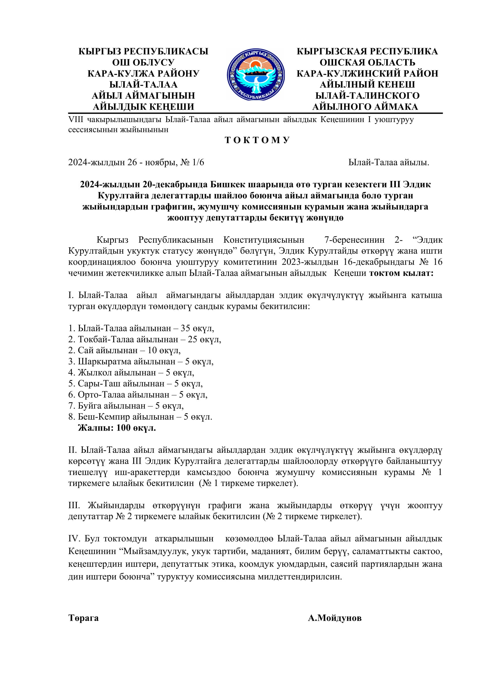 2024-жылдын ноябрь айында кабыл алынган токтомдор
