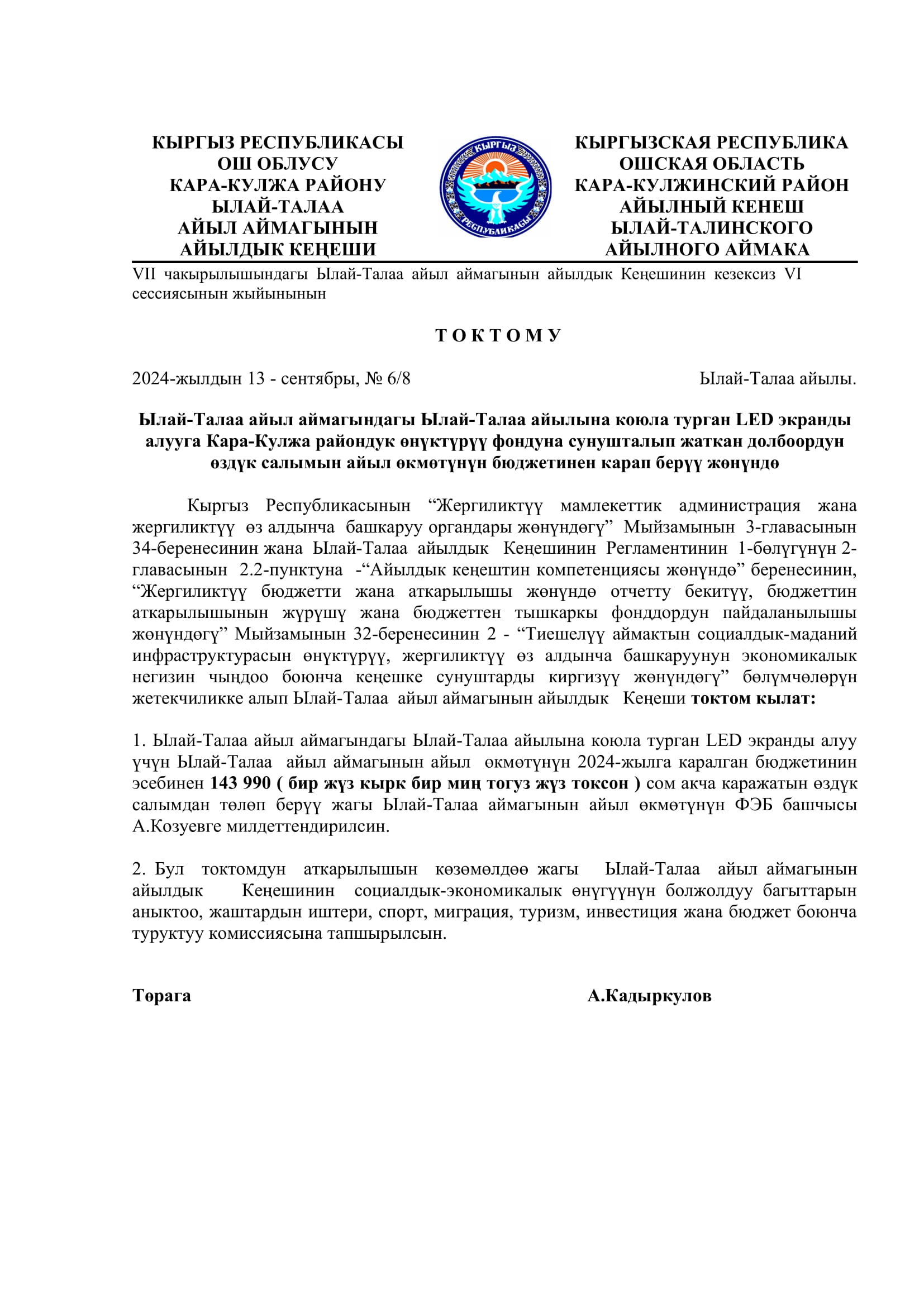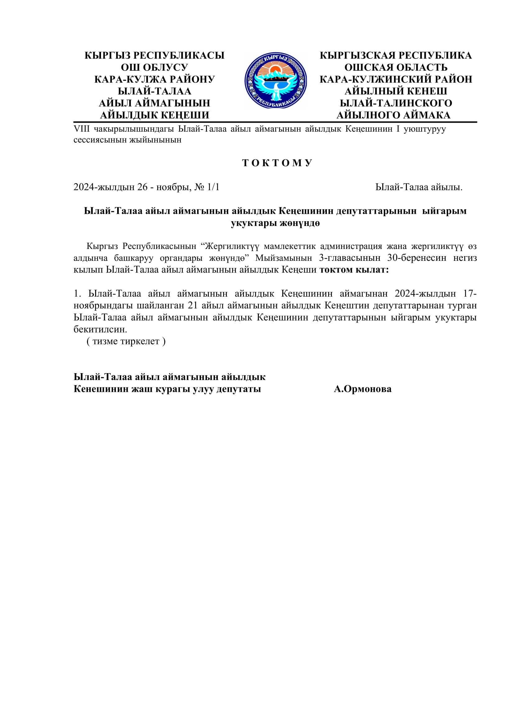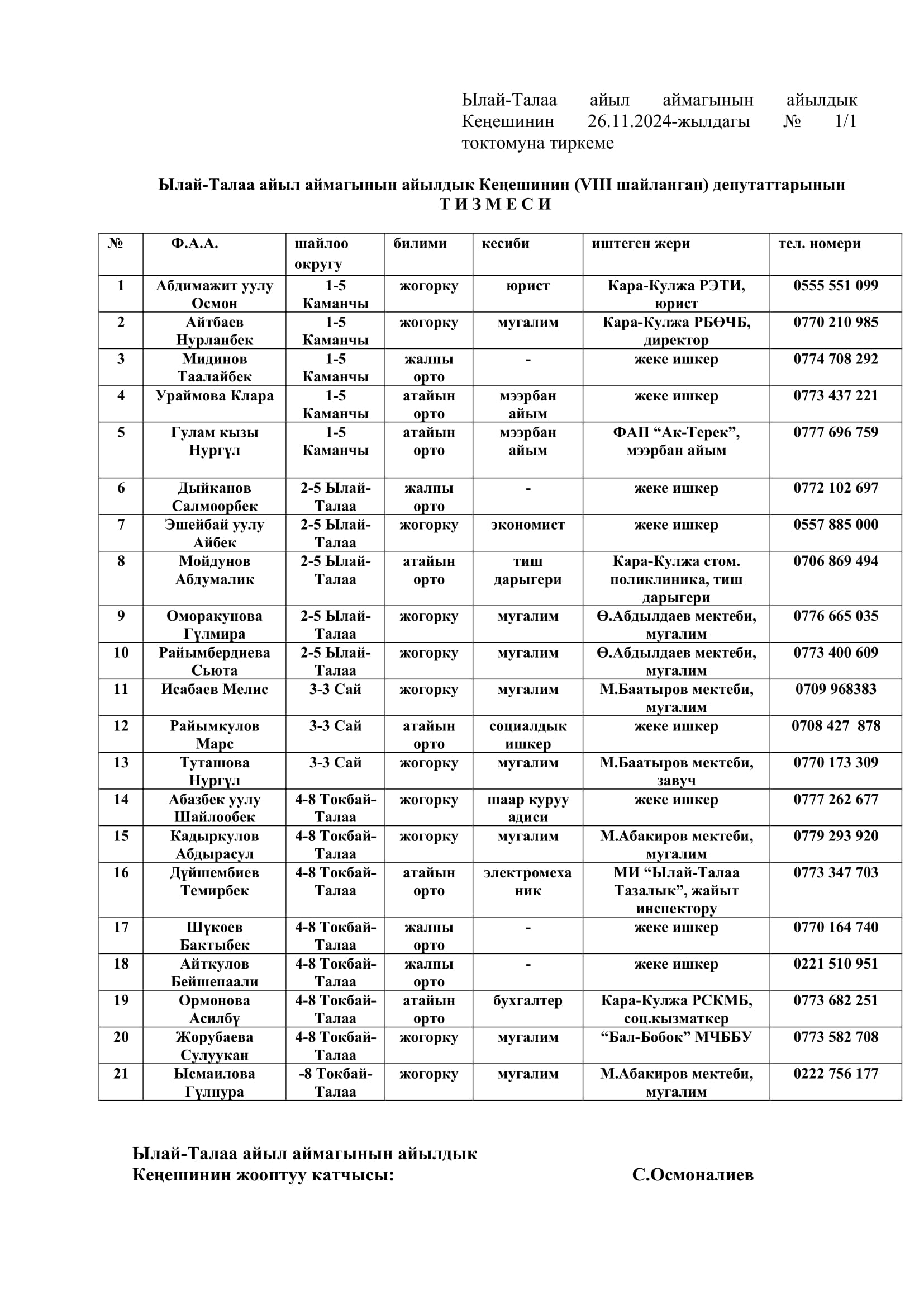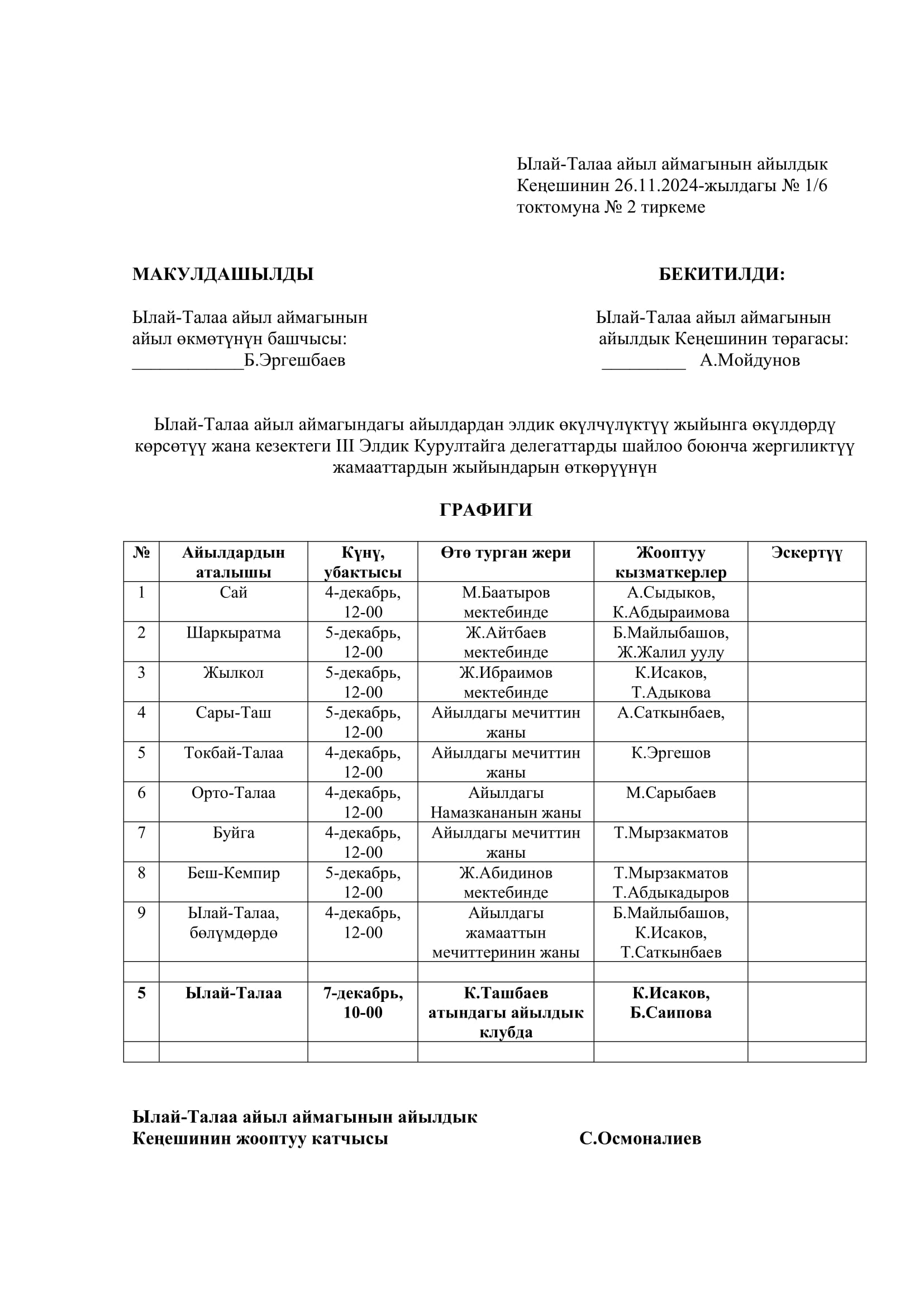 2024-жылдын ноябрь айында кабыл алынган токтомдор