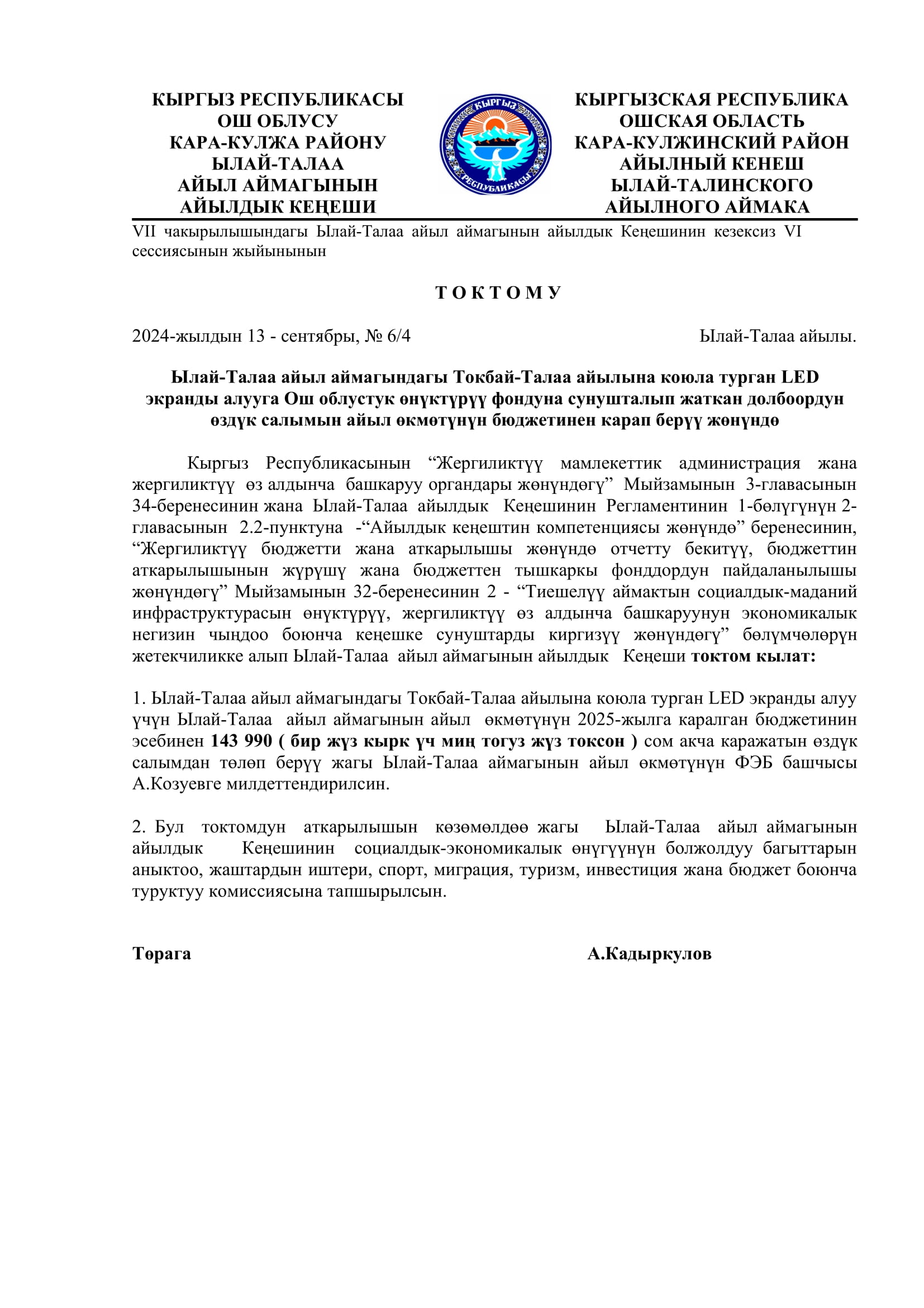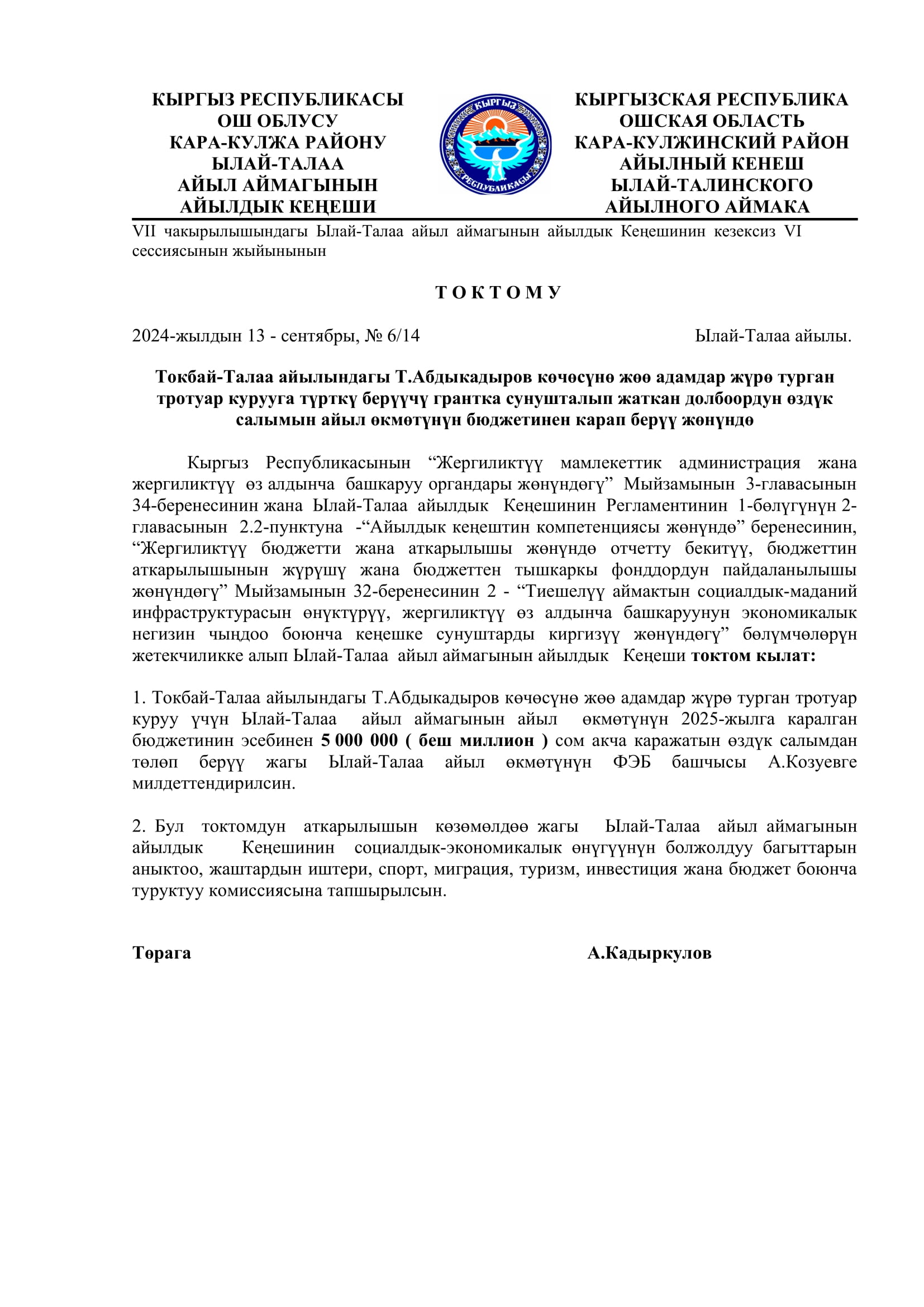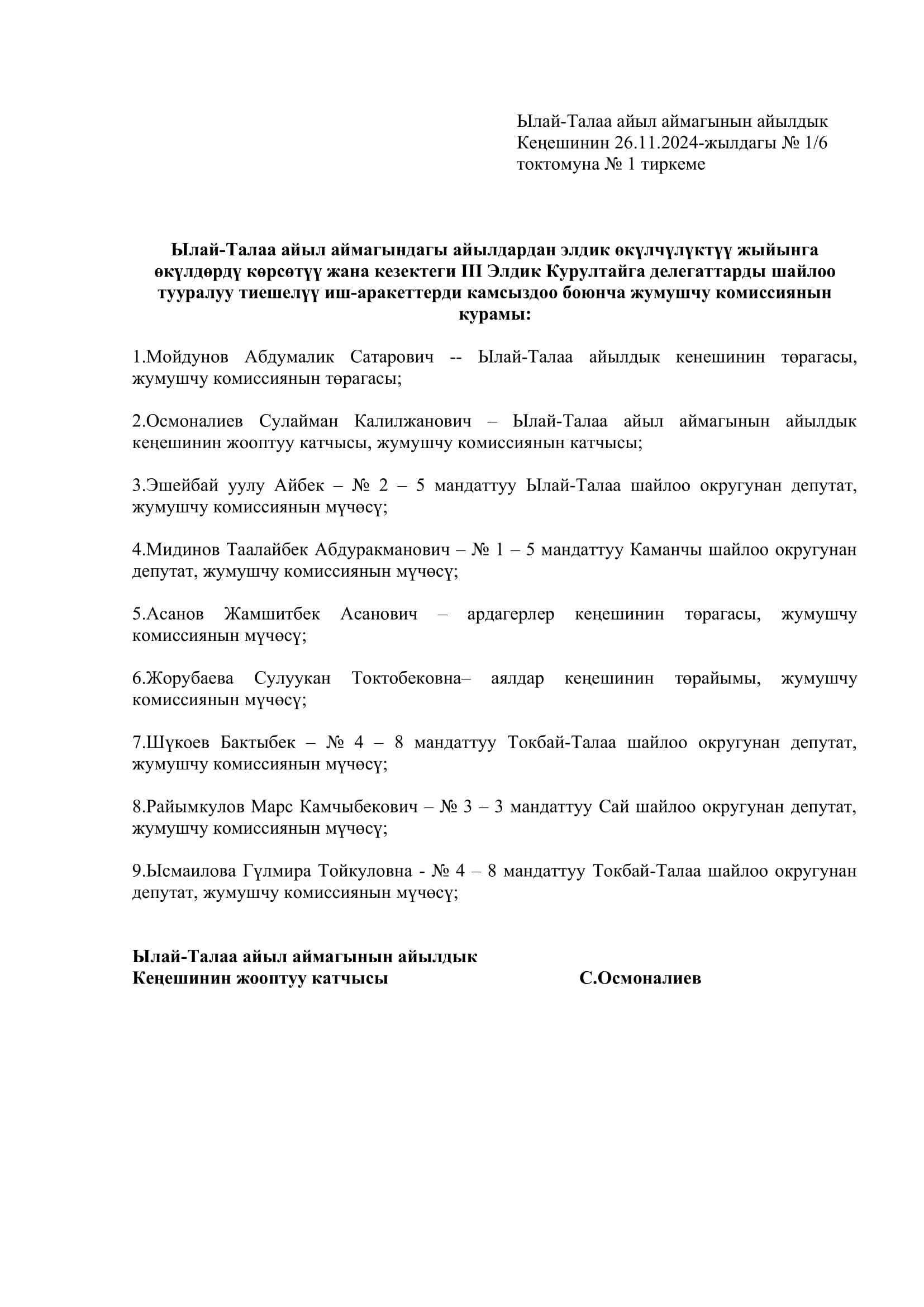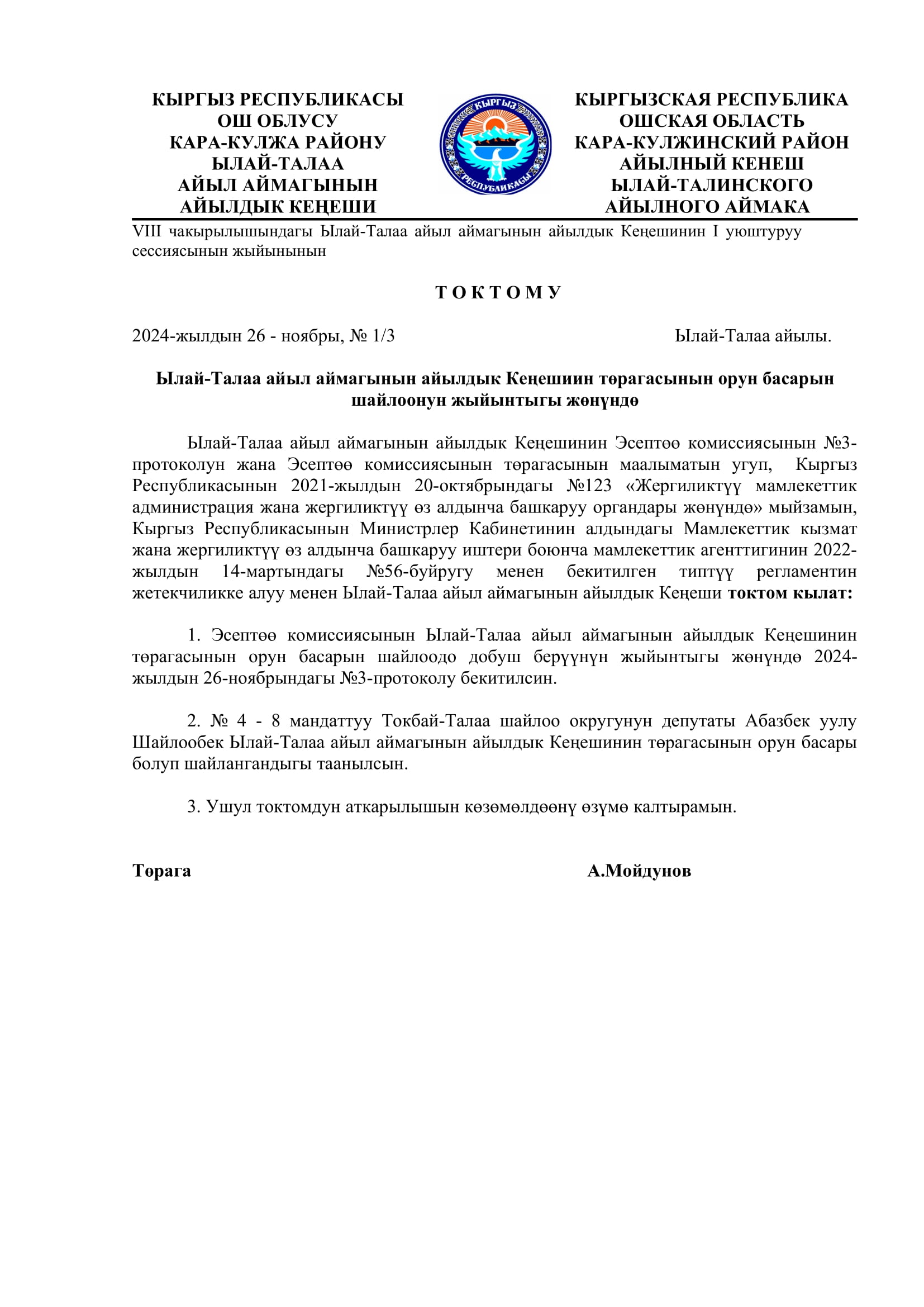 2024-жылдын ноябрь айында кабыл алынган токтомдор