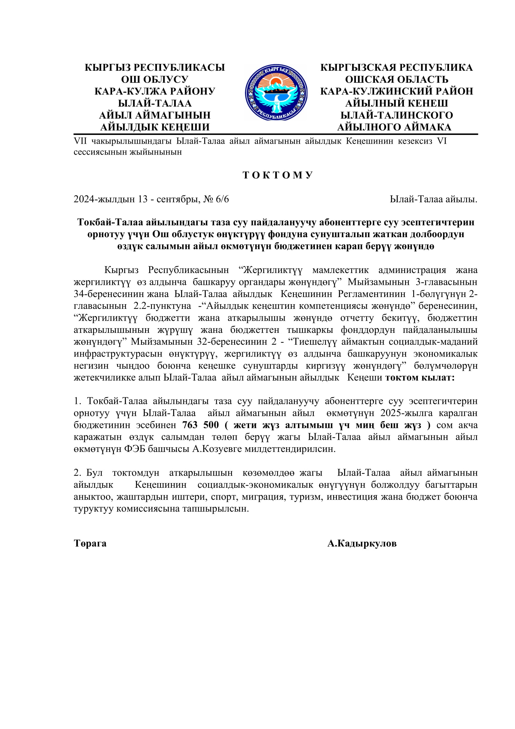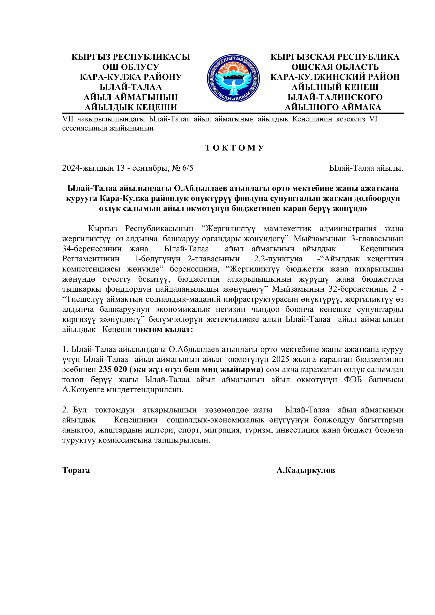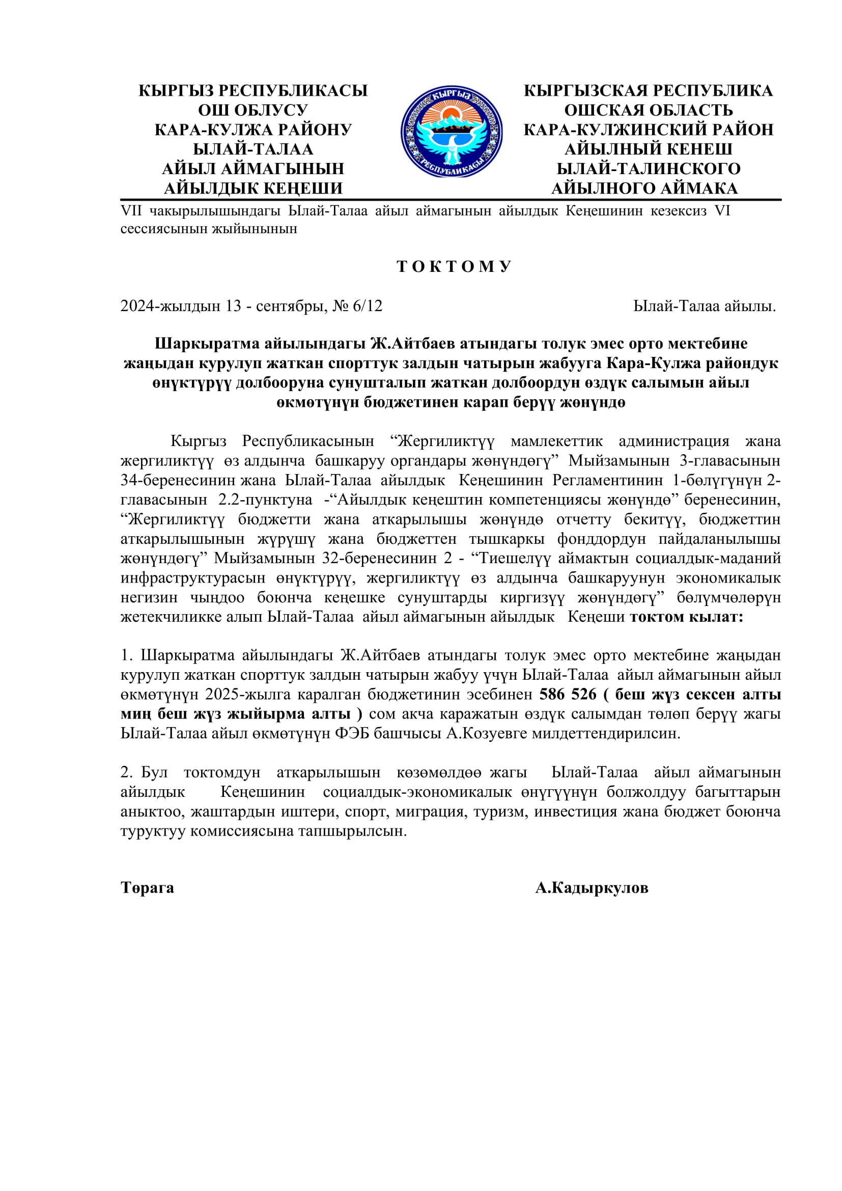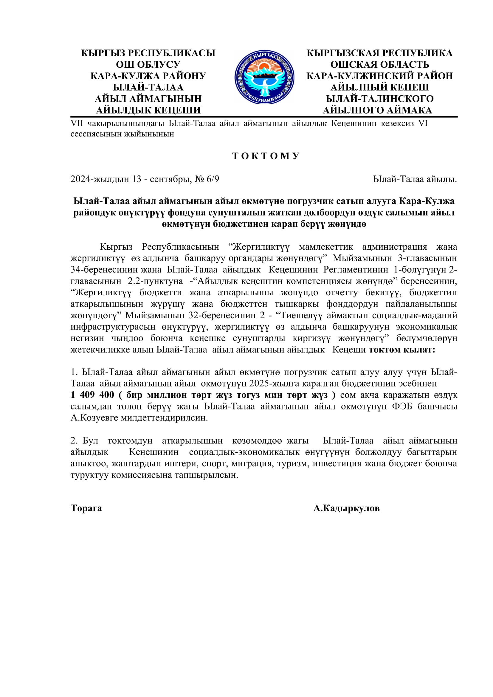 2024-жылдын ноябрь айында кабыл алынган токтомдор