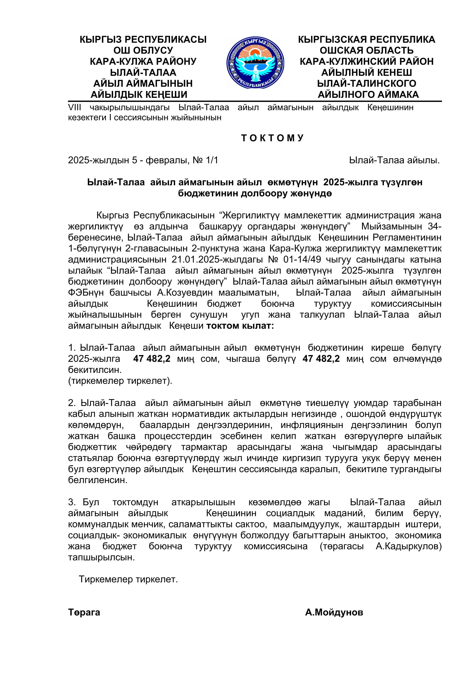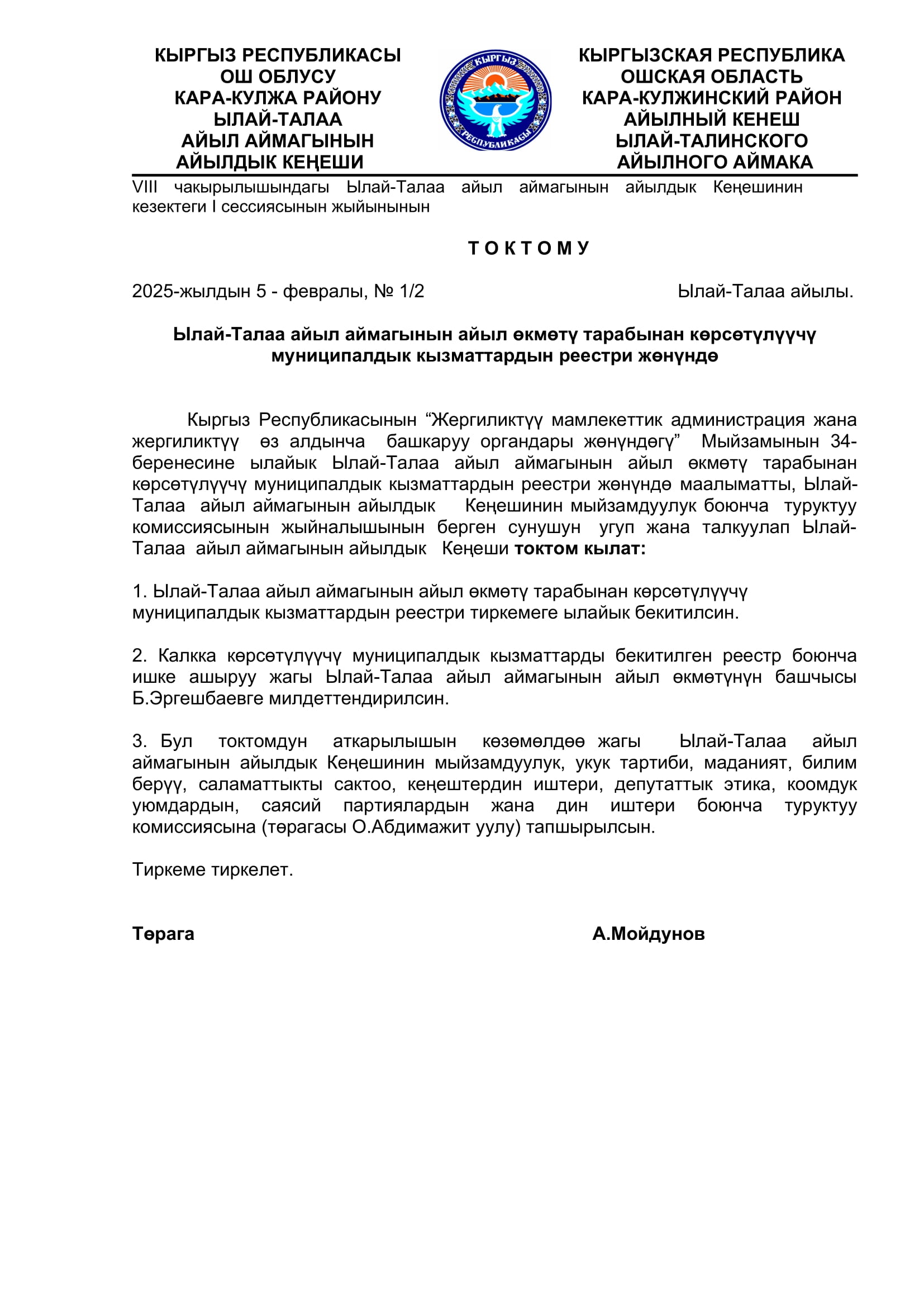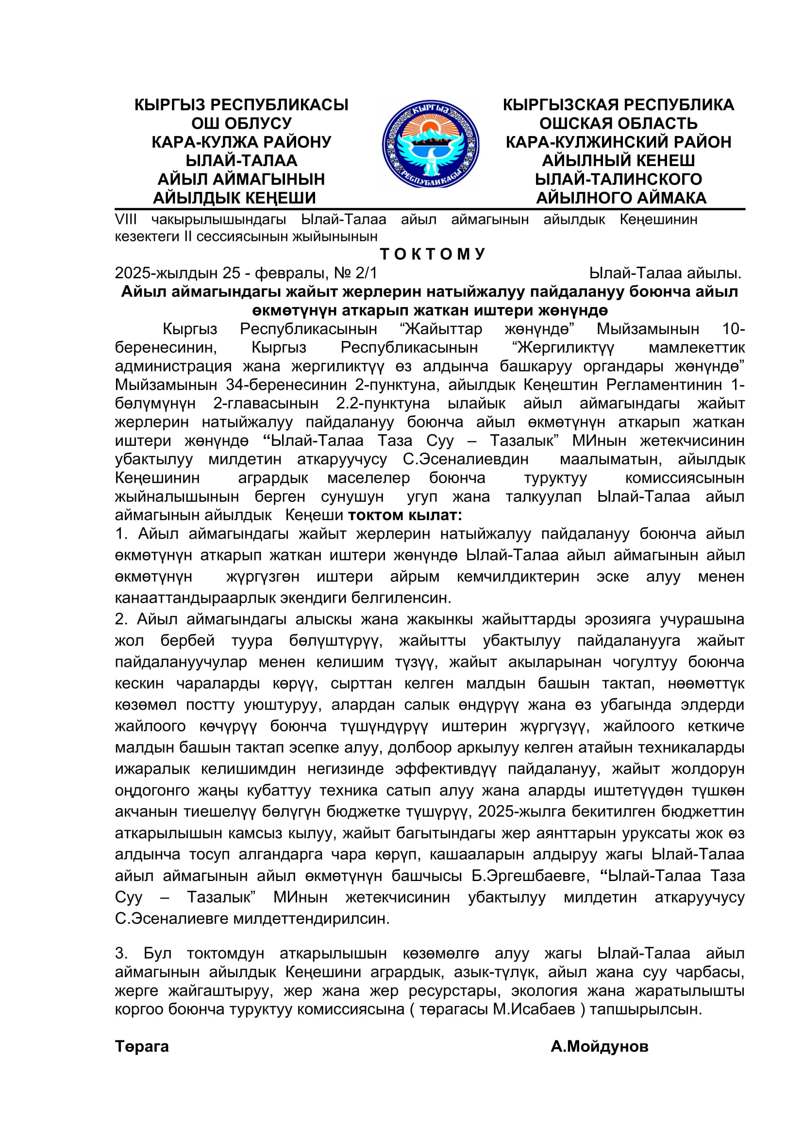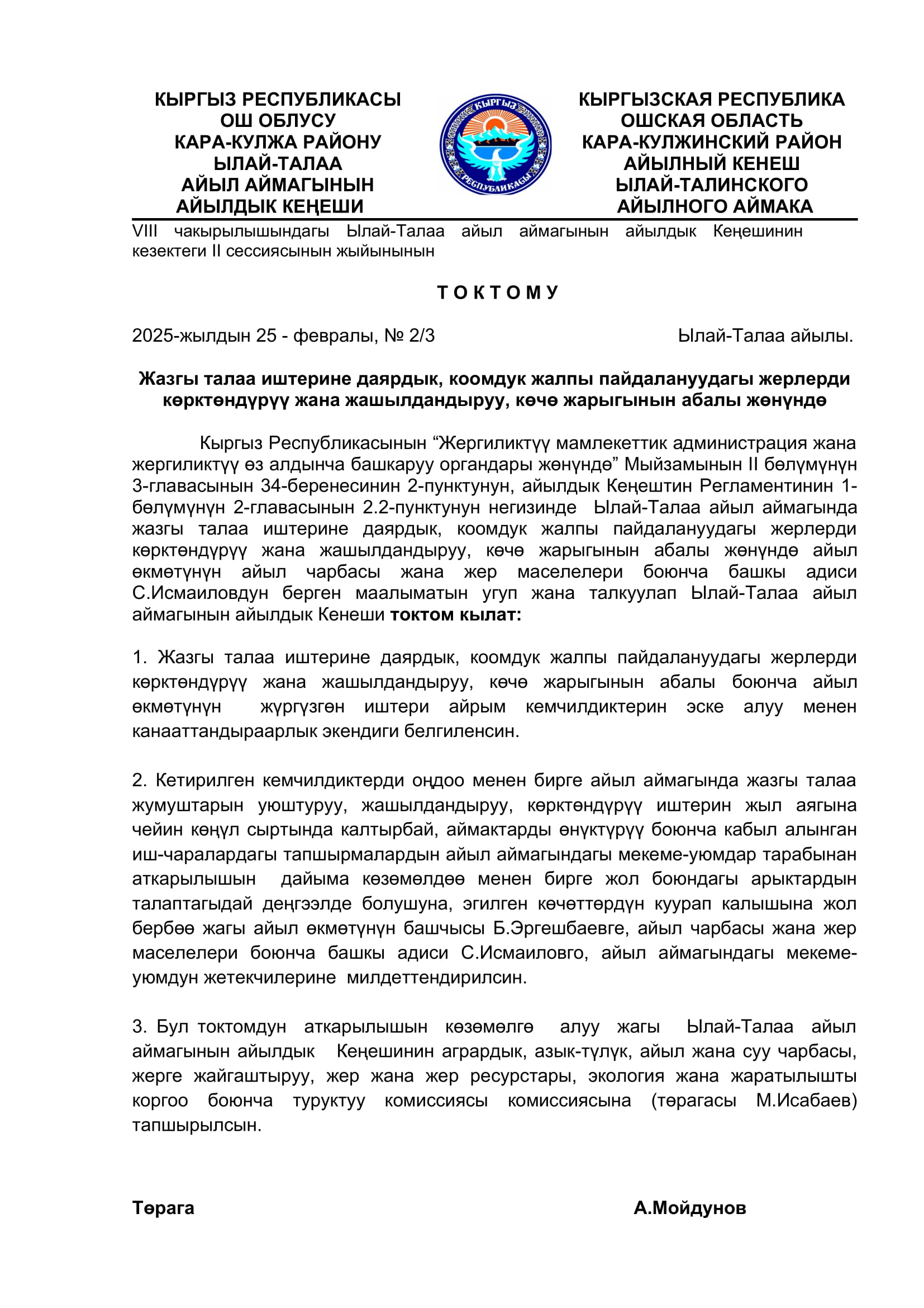 2025-жылдын январь, февраль айларында кабыл алынган токтомдор