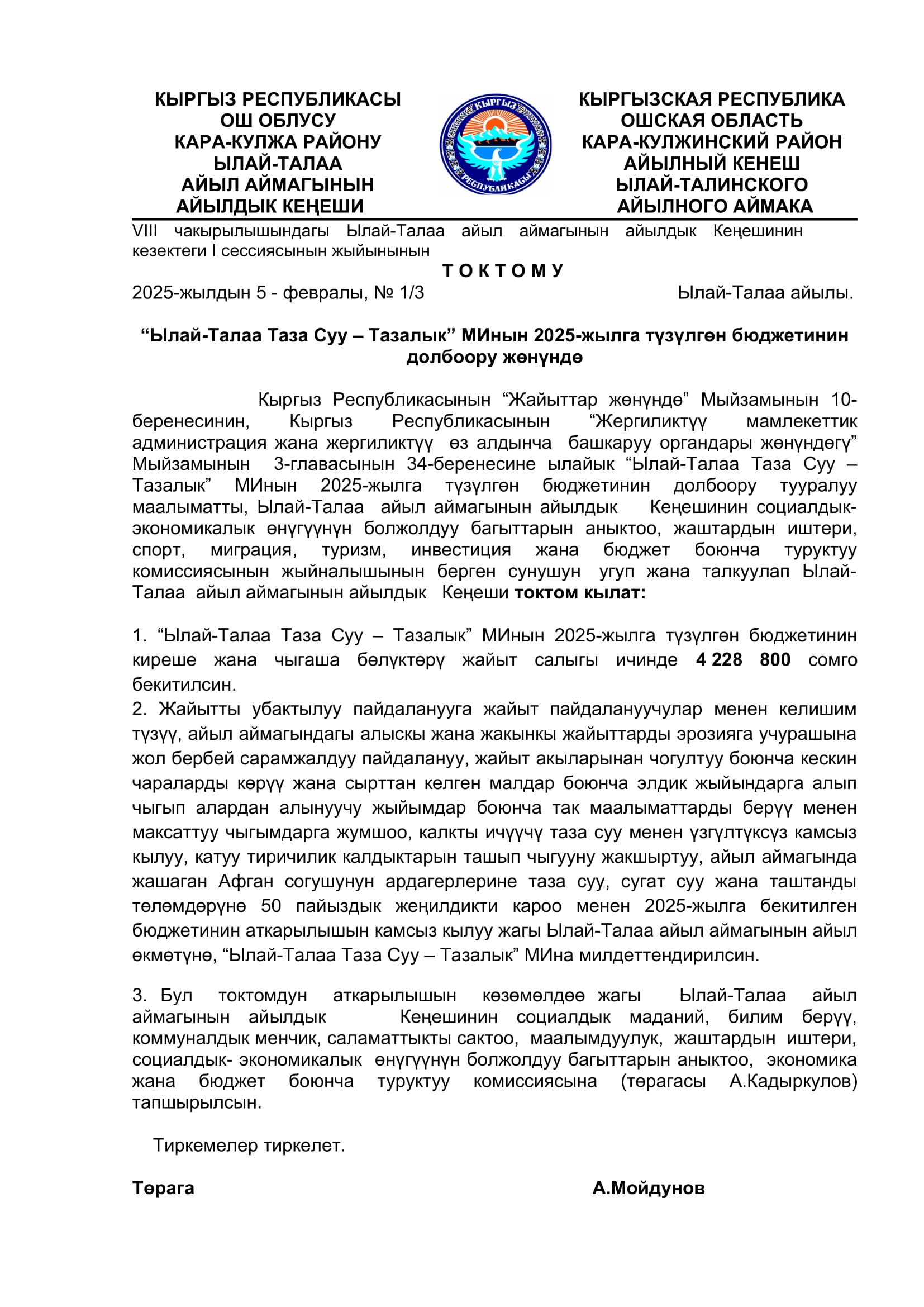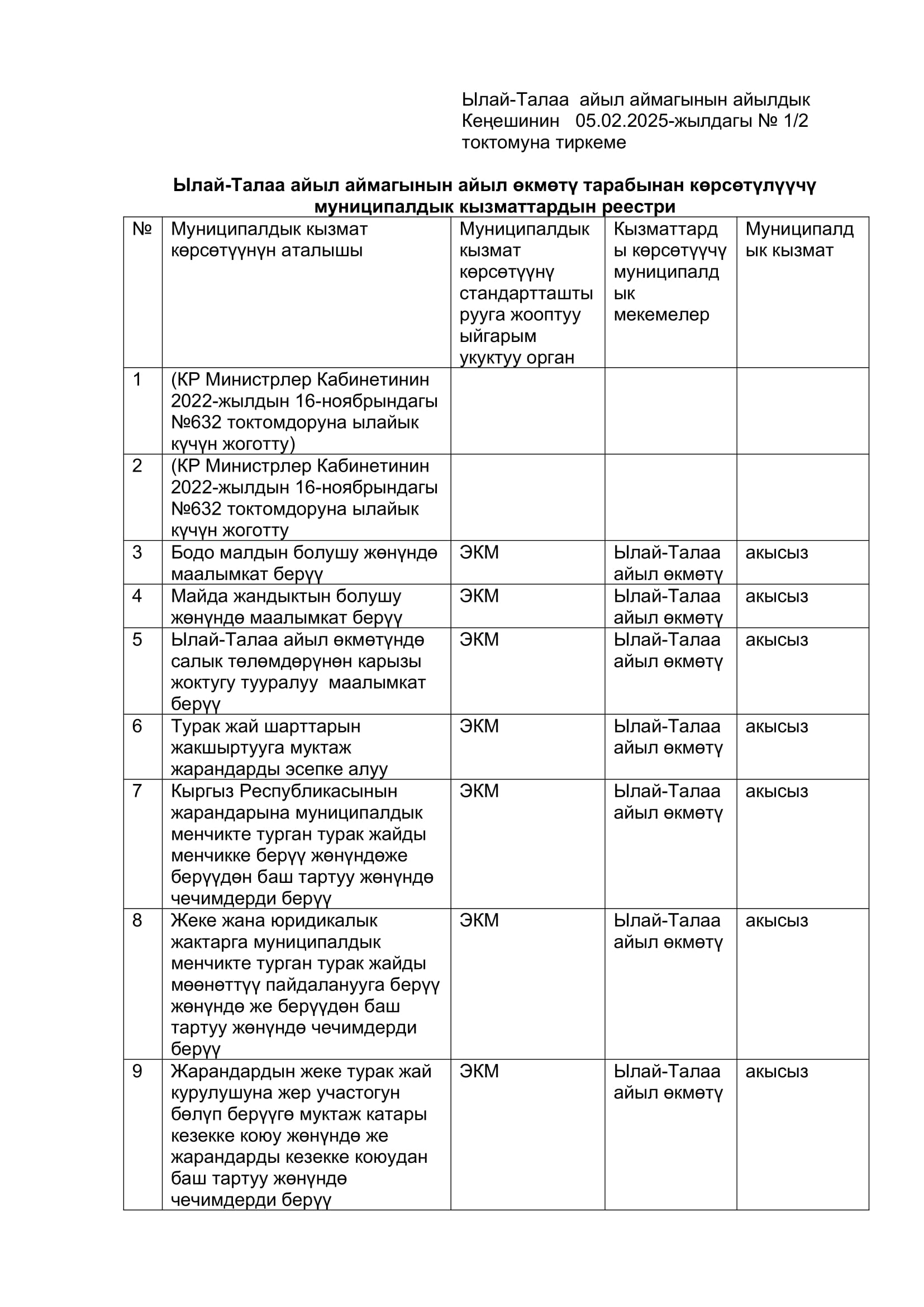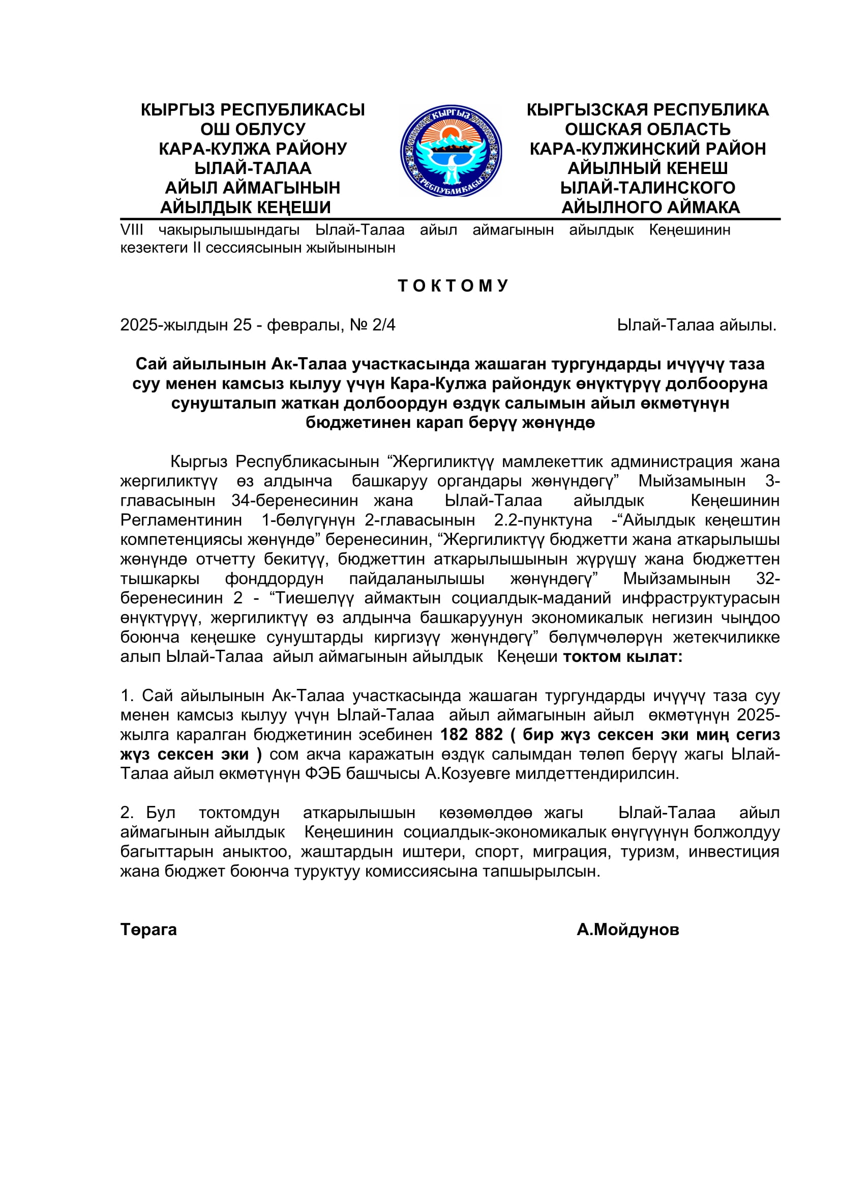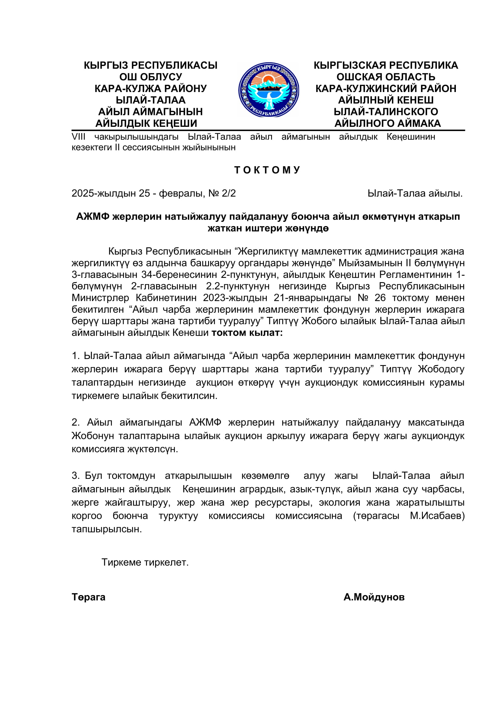 2025-жылдын январь, февраль айларында кабыл алынган токтомдор