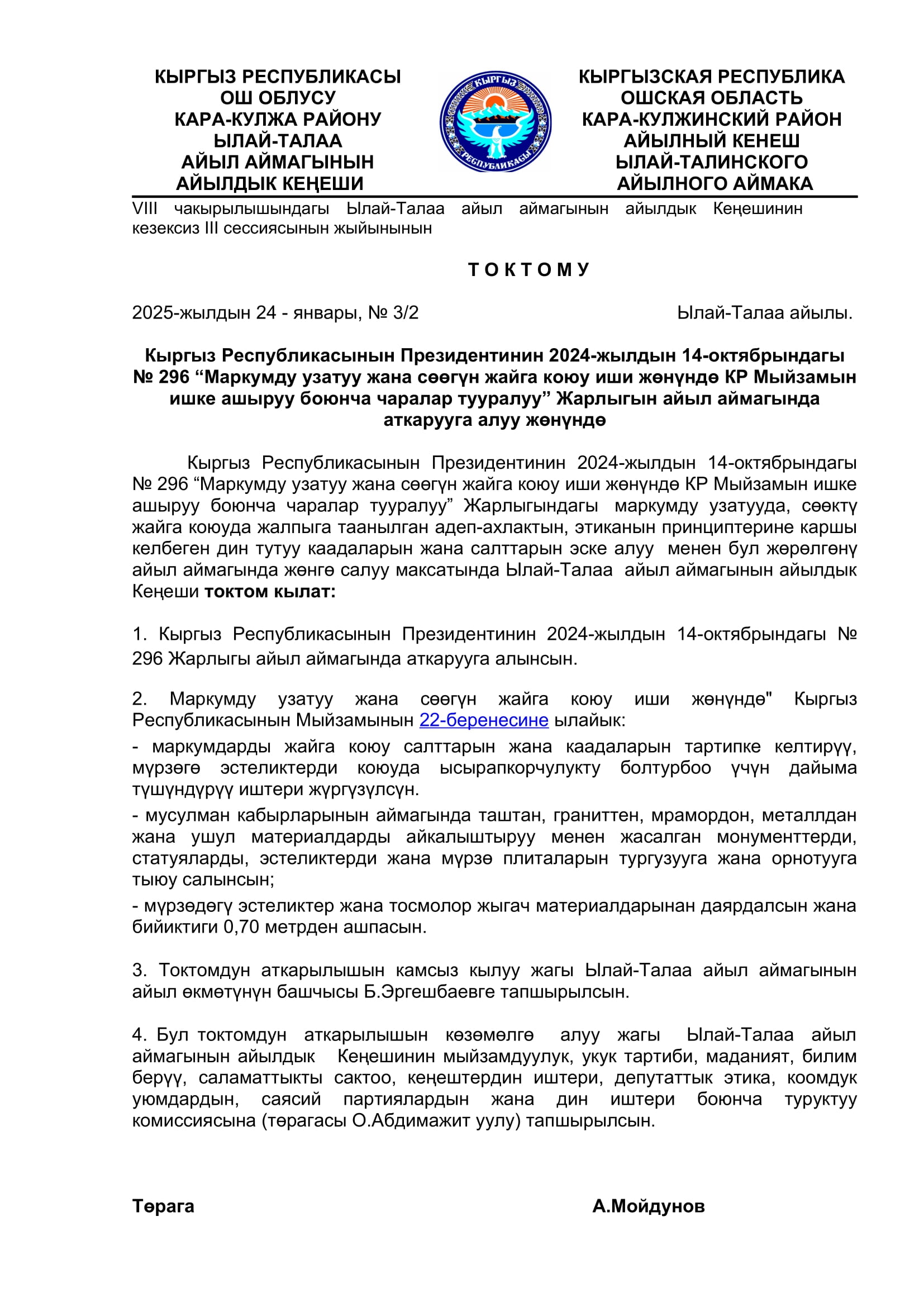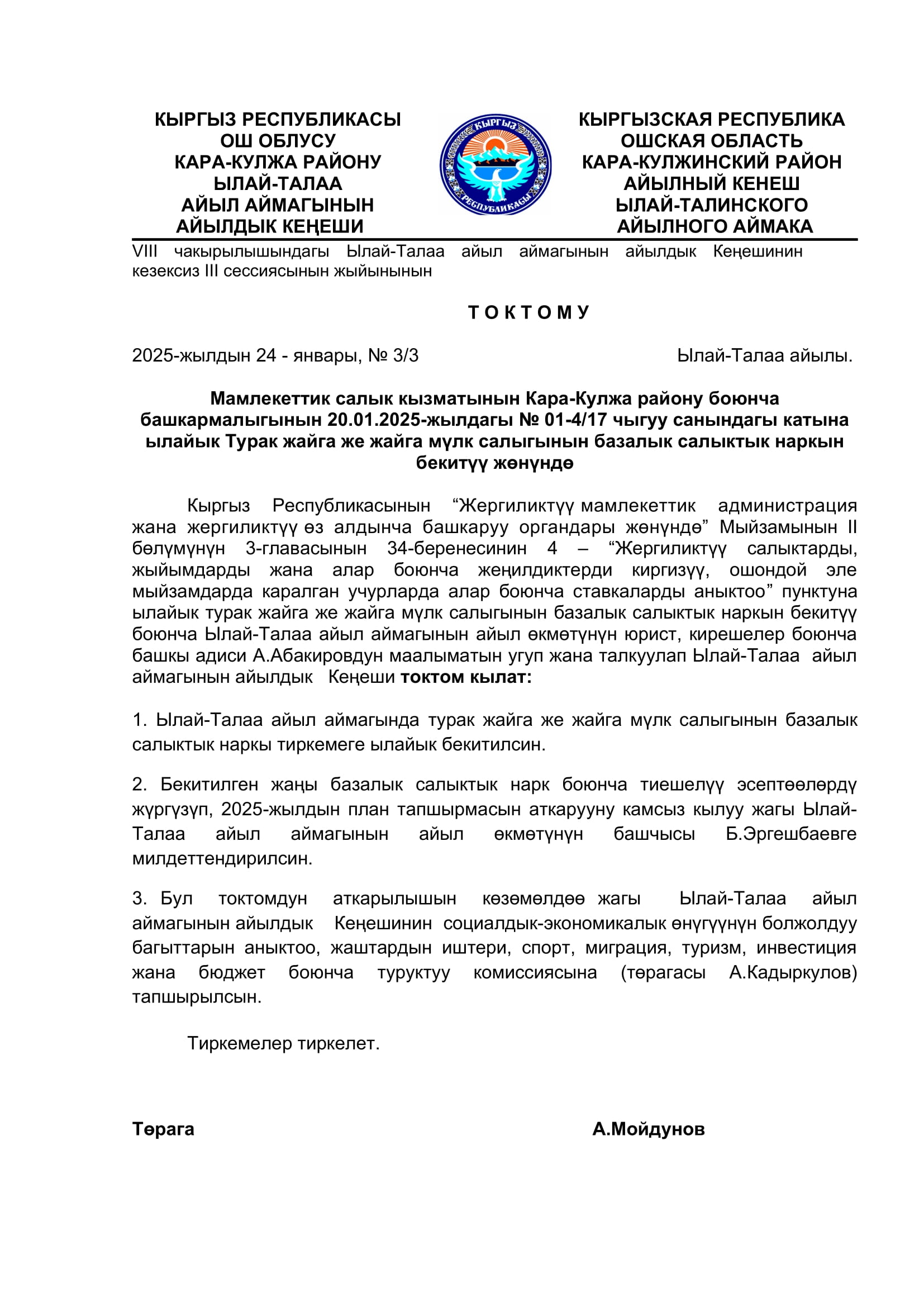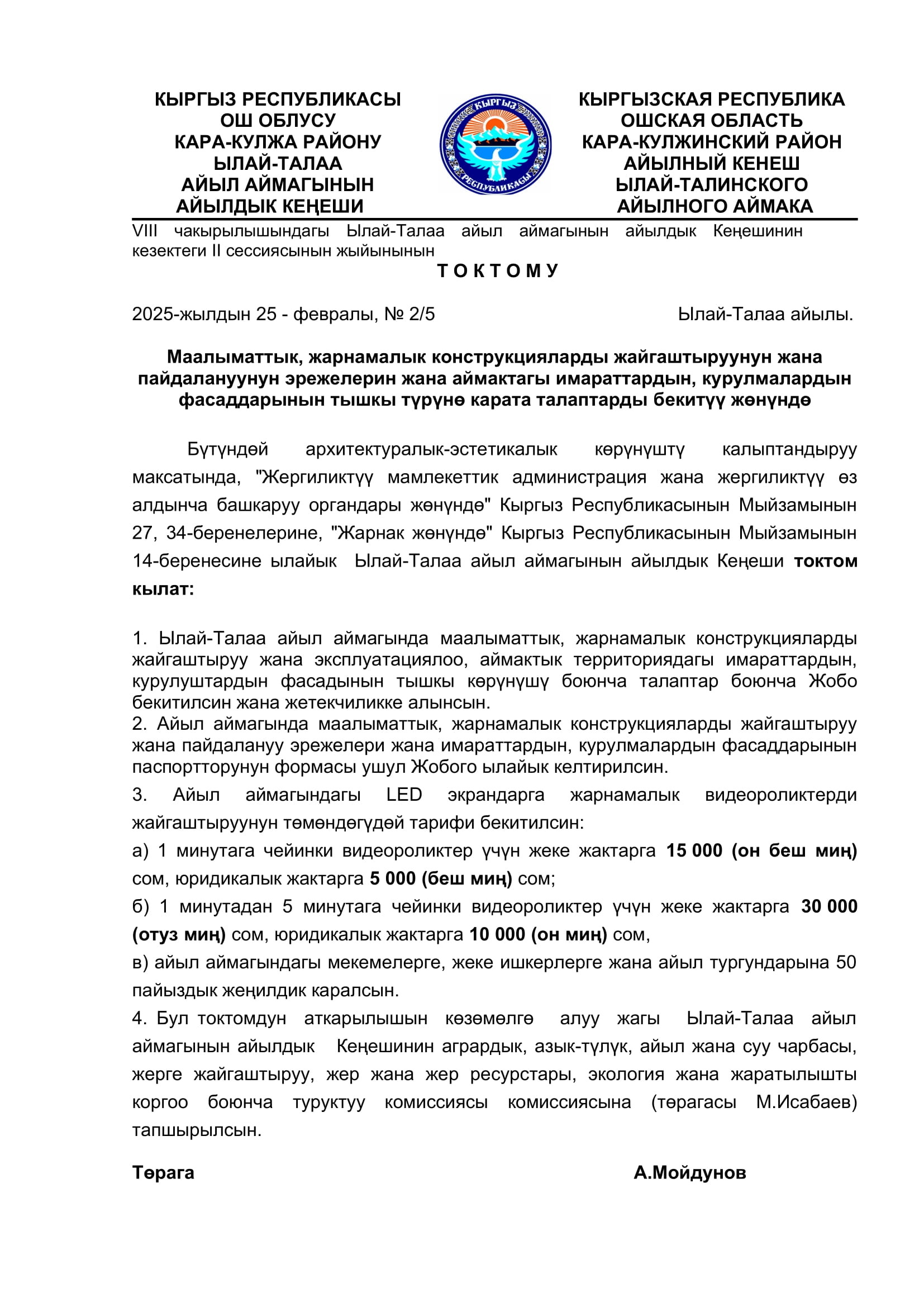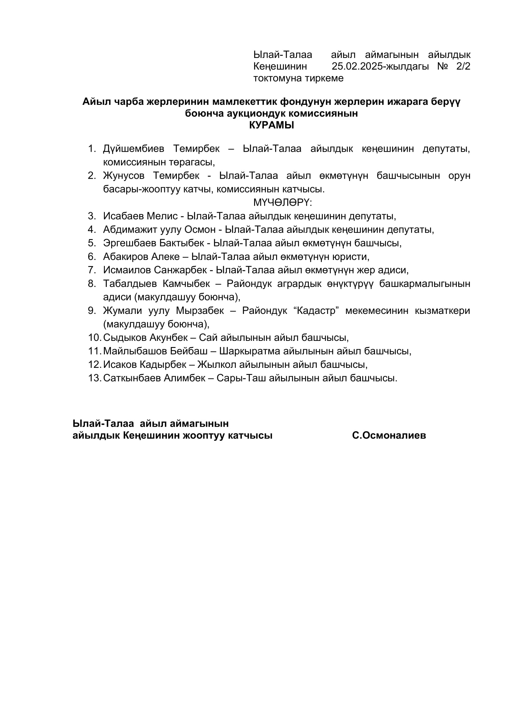 2025-жылдын январь, февраль айларында кабыл алынган токтомдор