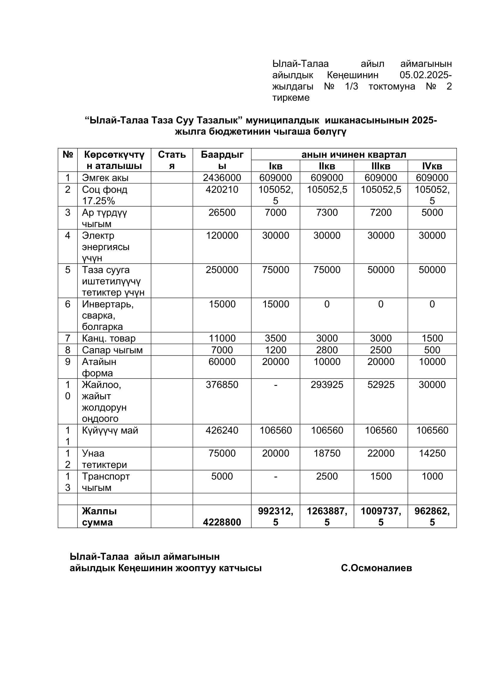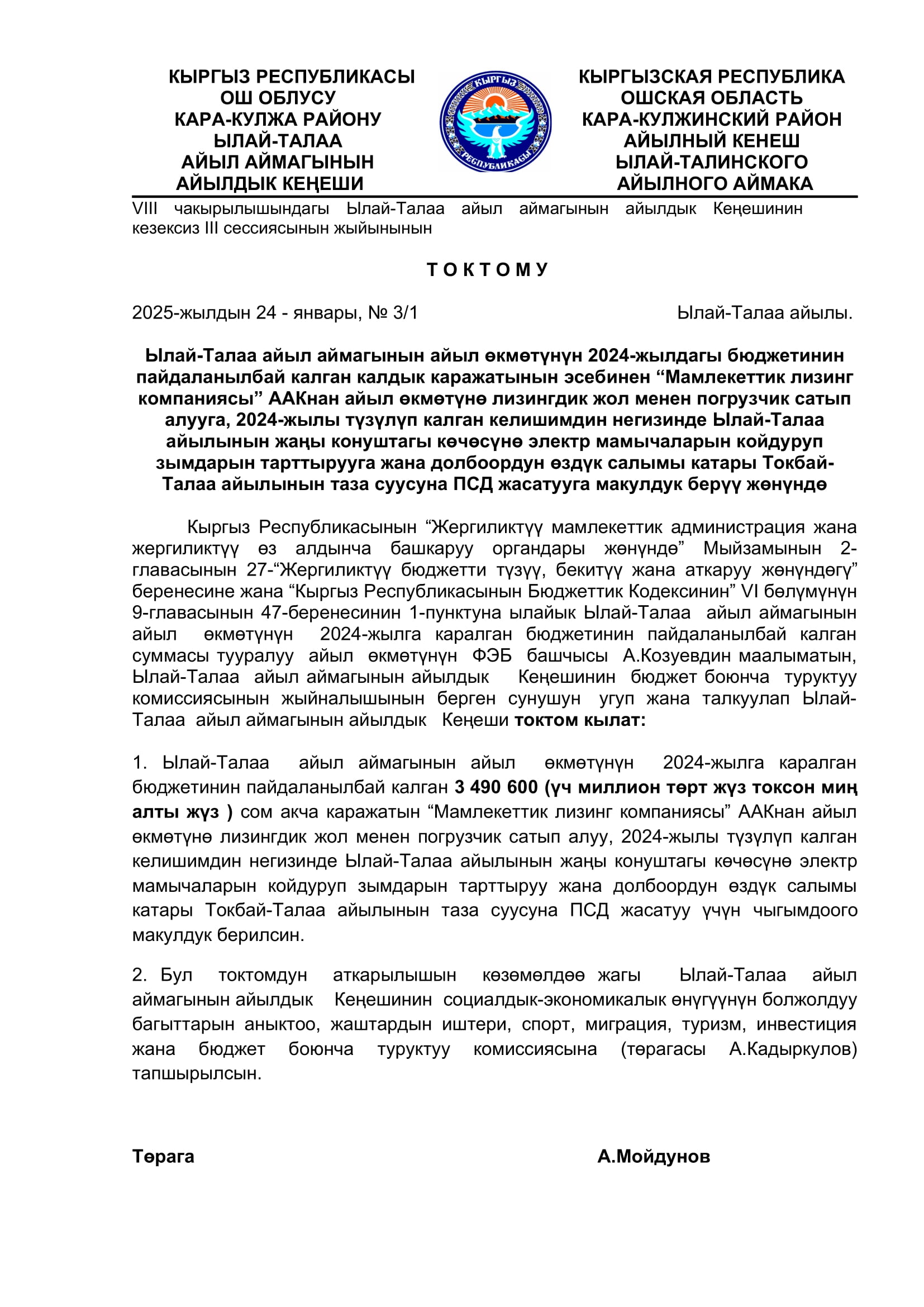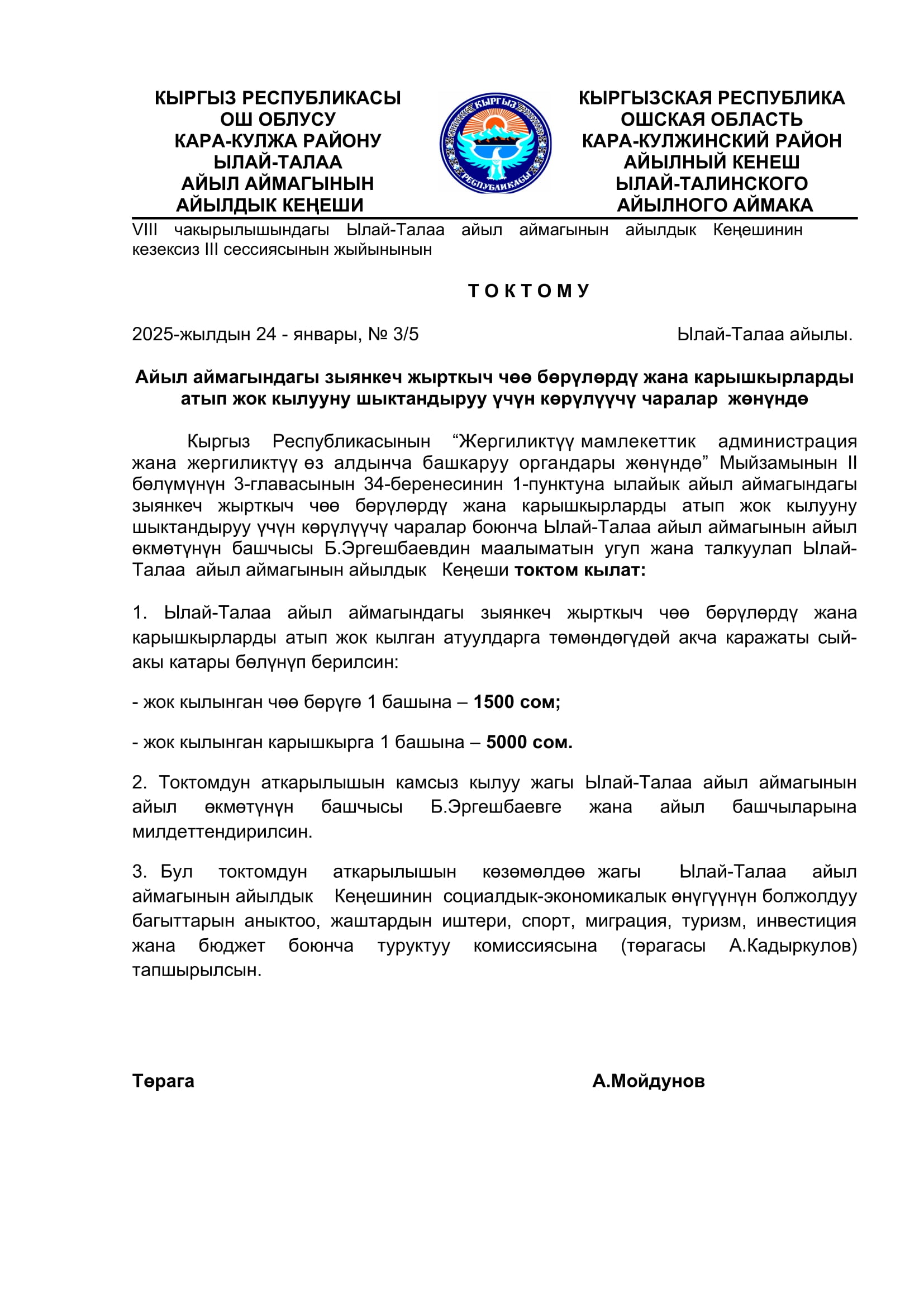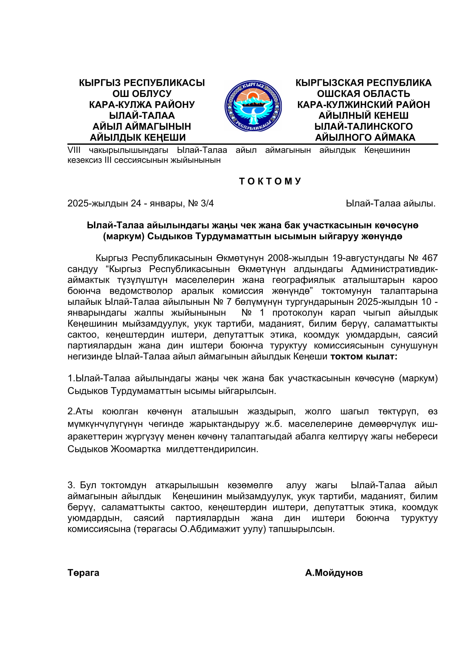 2025-жылдын январь, февраль айларында кабыл алынган токтомдор