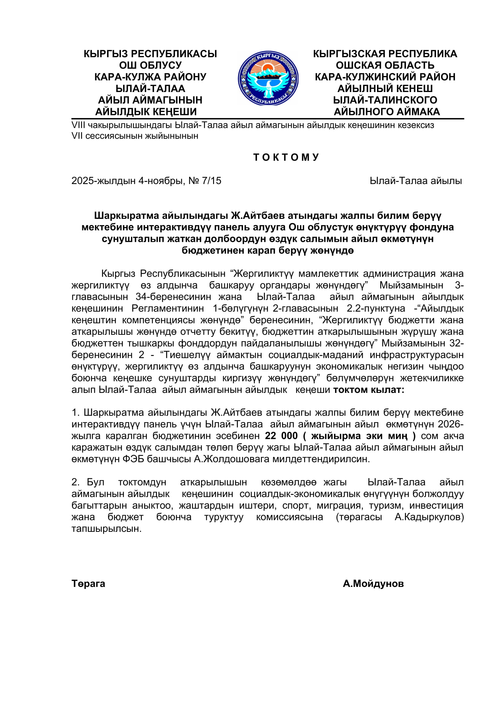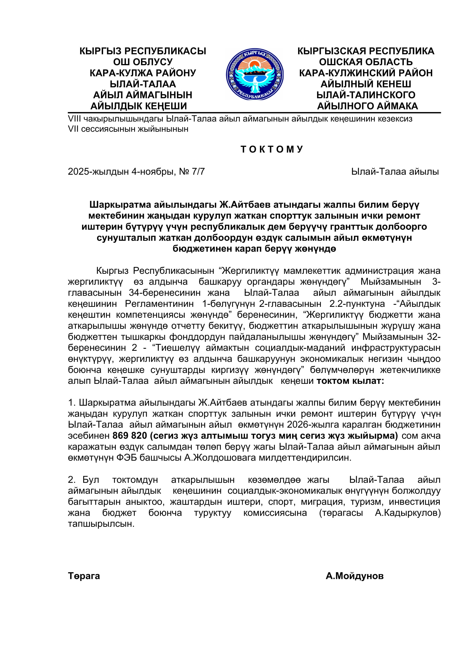 Социалдык-экономикалык өнүгүү Программасынын (СЭӨП) аткарылышы