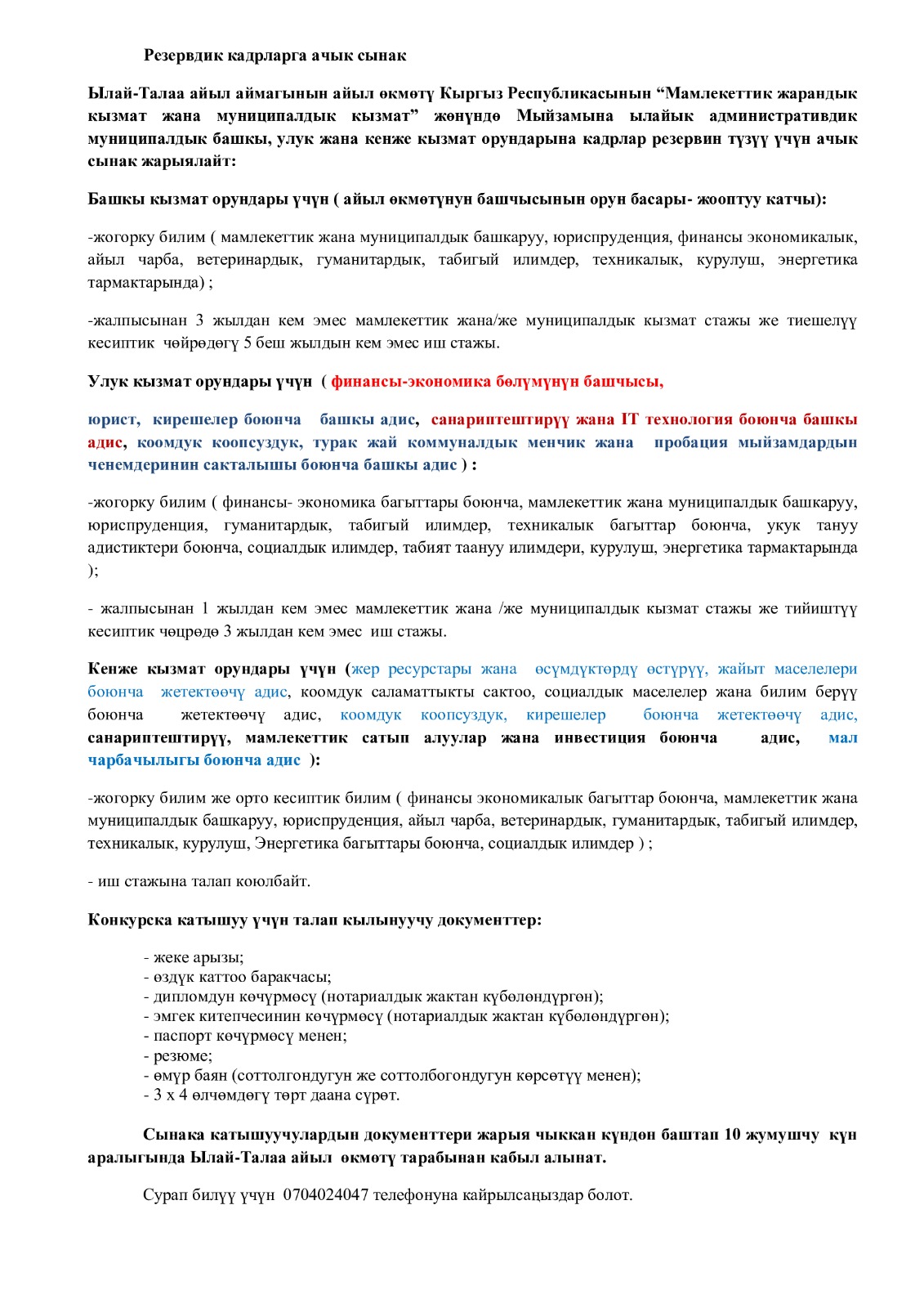 Резервтик кадрларга ачык сынак.